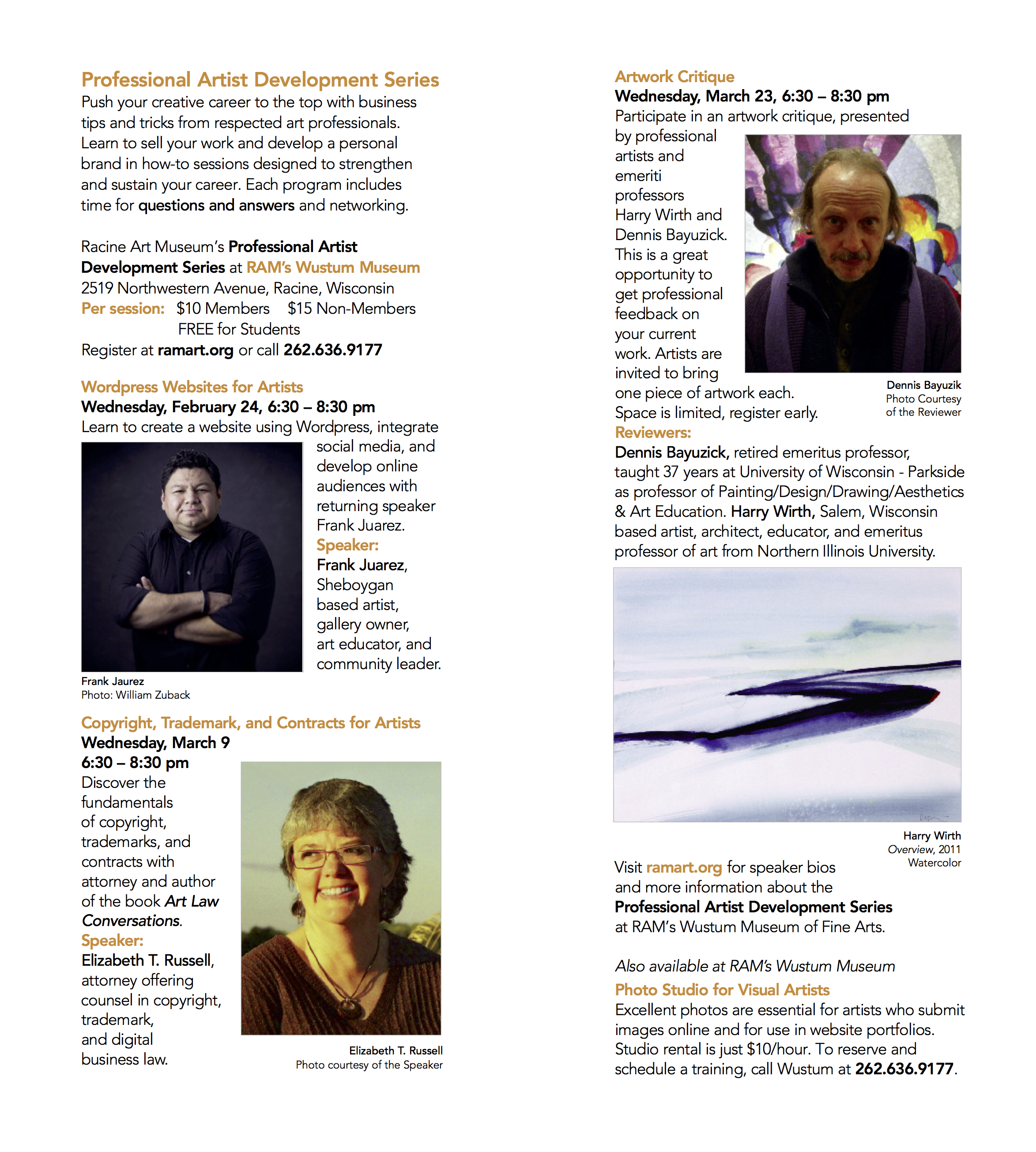 I am thrilled to return to the RAM’s Wustum Museum of Fine Arts as a speaker focusing on professional development for artists. The topic I will be presenting on is WordPress Websites for Artists.