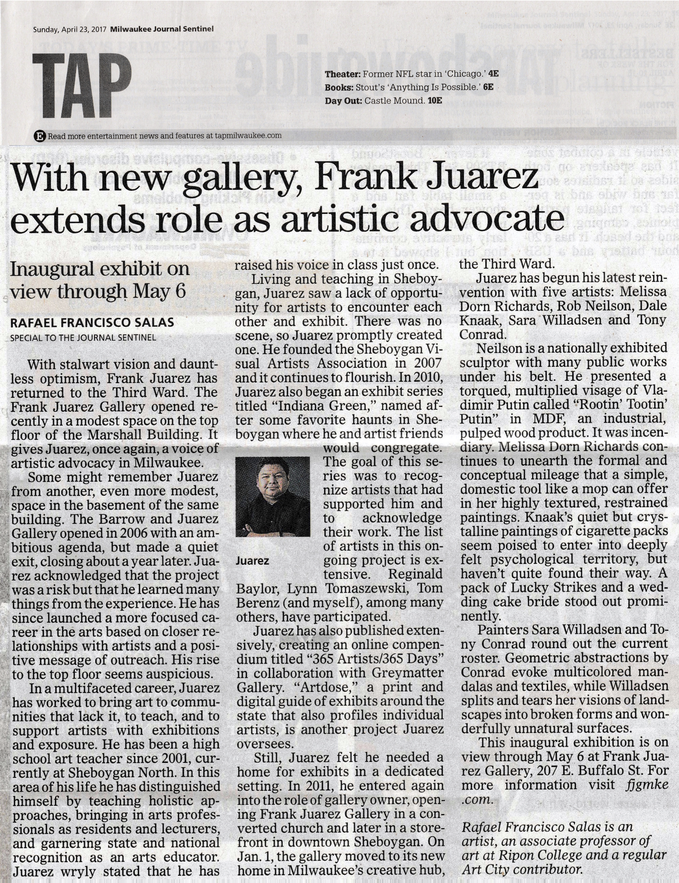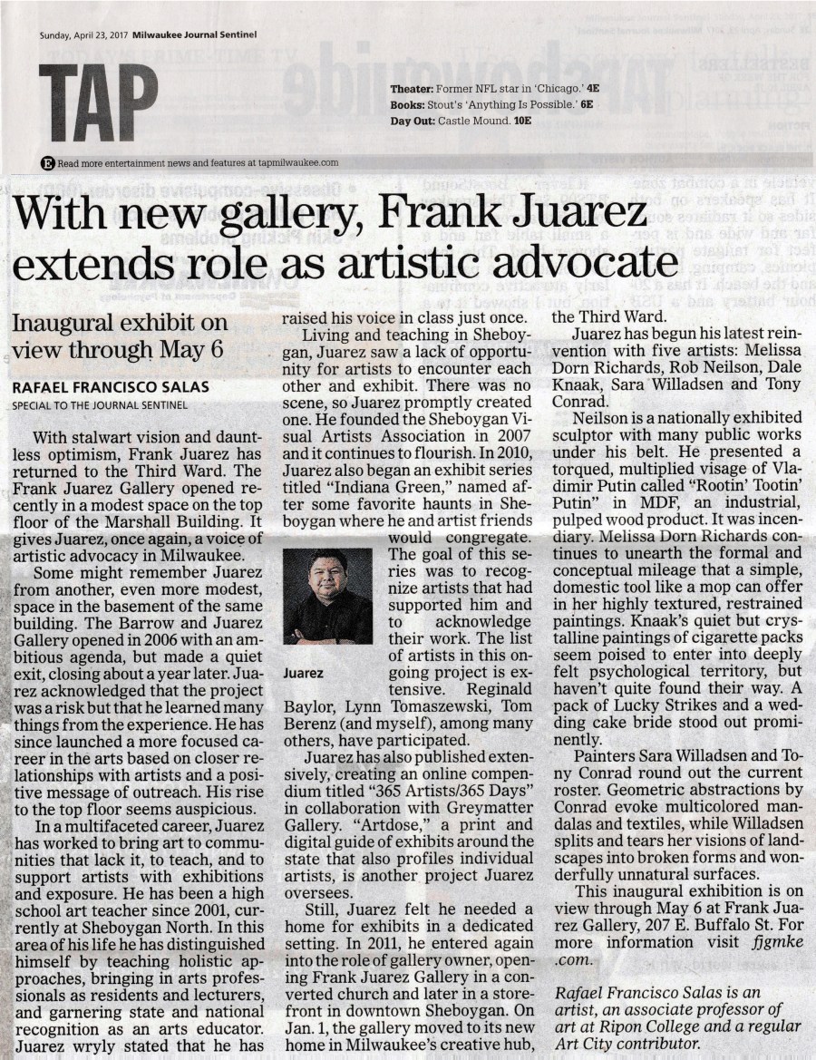 With new gallery, Frank Juarez extends role as artistic advocate Share this: Click to share on Facebook (Opens in new window) Facebook Click to share on X (Opens in new window) X Click to email a link to a friend (Opens in new window) Email Click to print (Opens in new window) Print Like Loading...