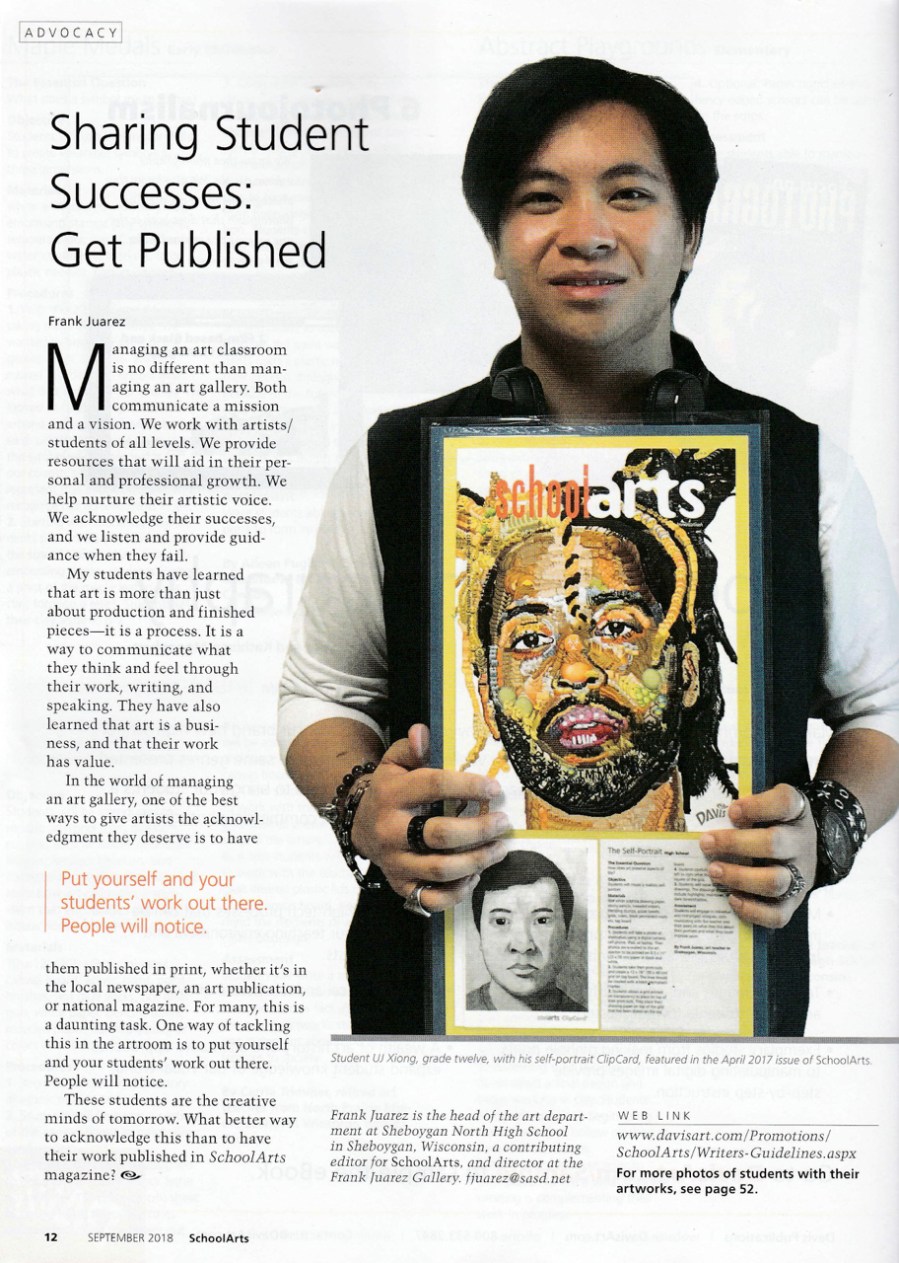 Getting published does not start when you are an adult. We often hear that our youth are the future of tomorrow. If we believe this, then as professionals we need to start seeking out opportunities to aid in our future’s personal and professional growth. Frank Juarez has been fortunate to have his students’ artwork published in SchoolArts Magazine since 2015.