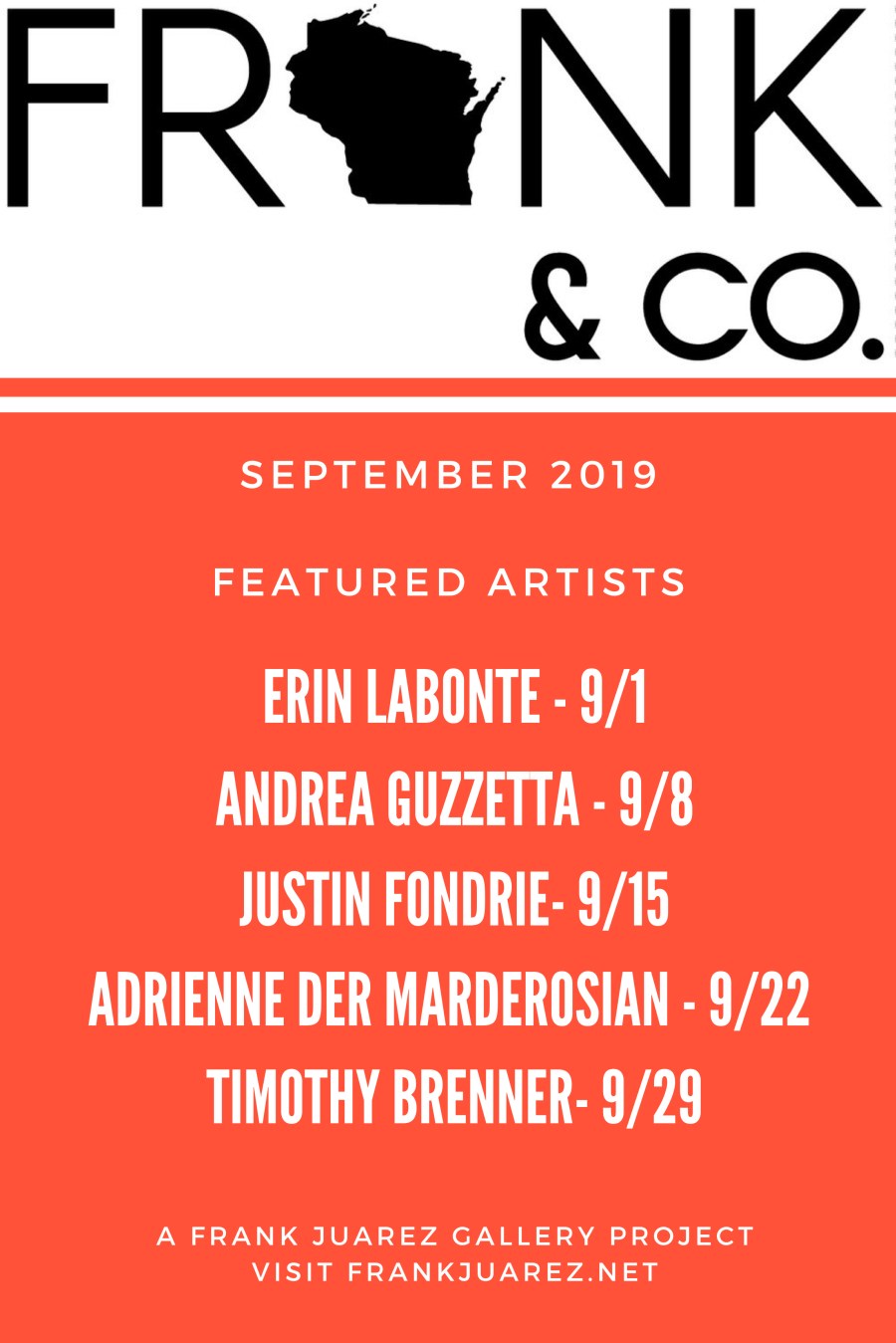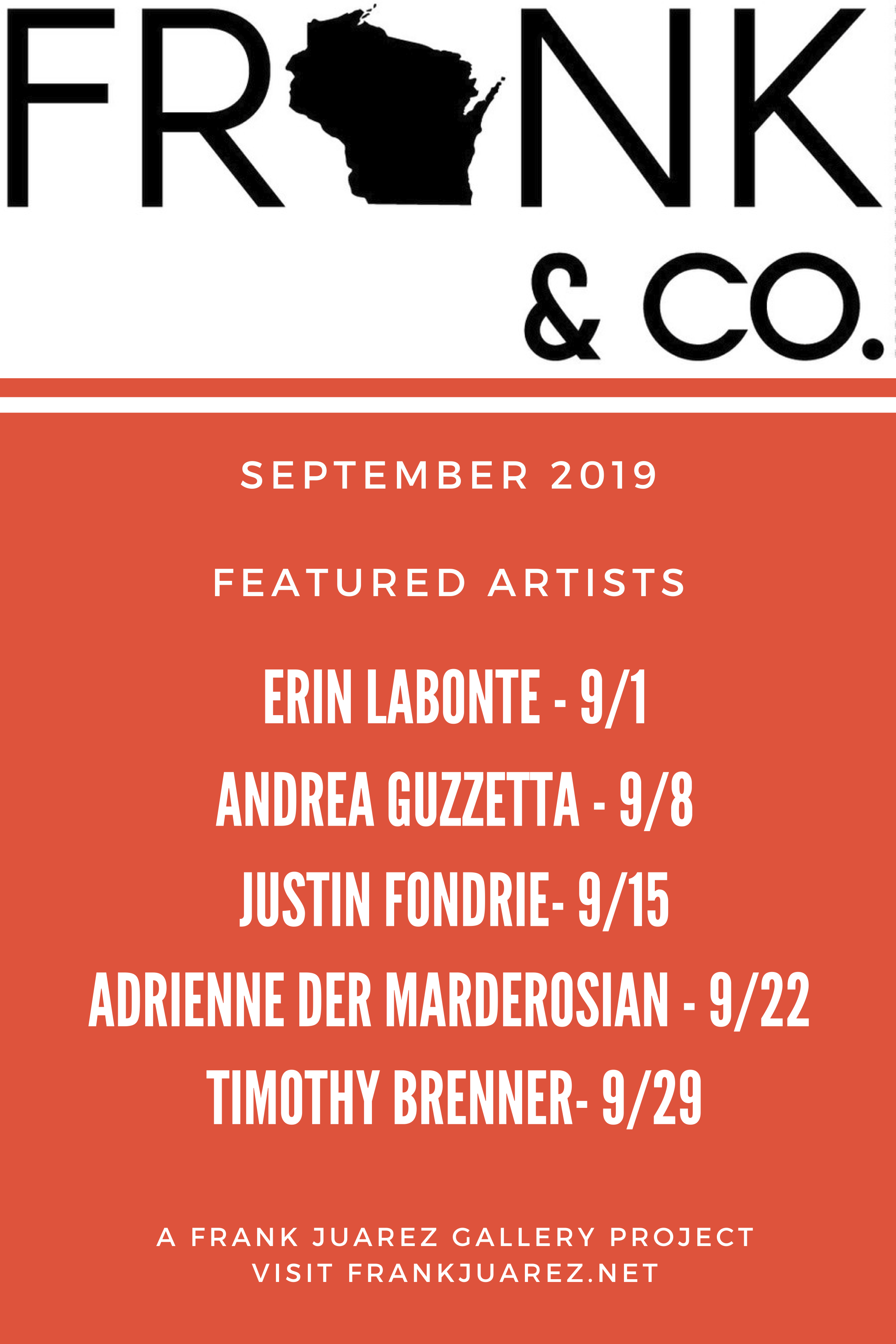 FRANK & CO Wisconsin Art e-newsletter is committed to introducing to our growing subscribers and followers on what is happening in the visual arts in Wisconsin such as but not limited to: exhibitions, events, art, and news from artists, artist run galleries, pop up art shows, art groups, institutions, and art centers. This e-newsletter is published every Sunday at 7pm (CST). Subscribe today. It is free.