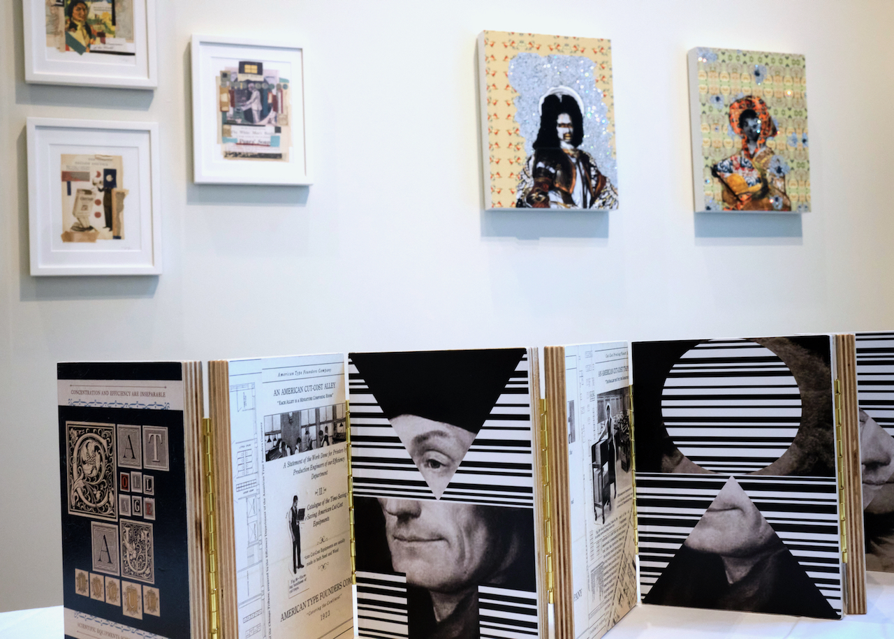 “The Money Show” in the AIR Space of Saint Kate – The Arts Hotel takes guests on a tour of late-stage capitalism. Each artist in the exhibition uses collage to unpack ideas about money and its influence on our culture. Artworks speak about Black wealth, immigrant remittances, and how mid-20th century advertising informs present-day attitudes. Artists collage dollar bills into flowers and mine material remnants to tell stories about home economics. The exhibition is co-curated by Frank Juarez, the publisher of Artdose Magazine, and Ric Kasini Kadour, the editor of Kolaj Magazine.