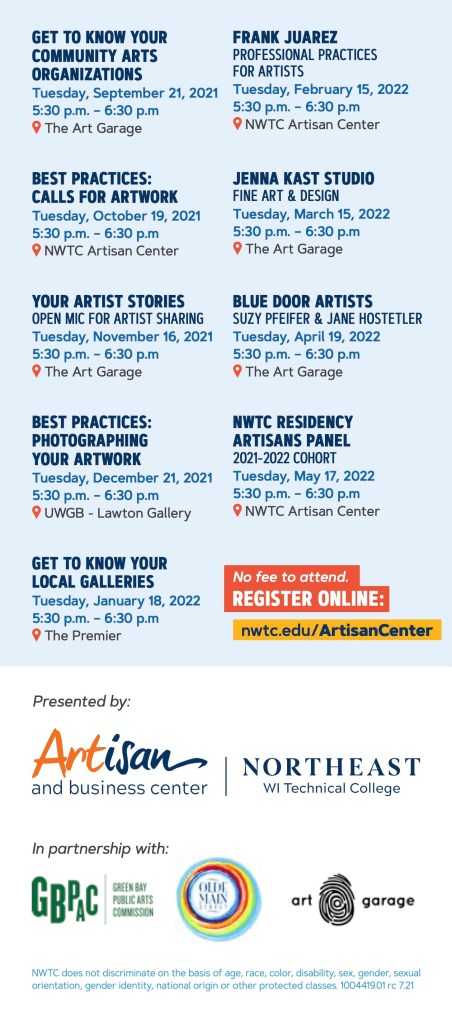 To register for the these upcoming presentations, visit nwtc.edu/ArtisanCenter
