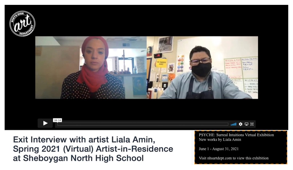 Teaching hybrid and virtual these past two [school] years has allowed the opportunity to do a deep dive into how we communicate our passion for art and art education with students, staff, parents, and the broader community. Through daily use of technology, engaging in online experiences can still be enriching and accessible when content is readily available to anyone in the United States and beyond. This has provided the opportunity to re-evaluate the effectiveness of an artist-in-residency program. Redesigning an in-person artist-in-residency to include more ways to invite artists from the United States into the classroom virtually made sense. With the flexibility of using both hybrid formats, students would continue to interact with more artists.