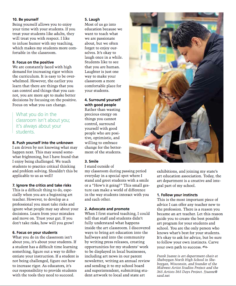 Here is a collection of articles written. Full articles are available and if you are an art educator interested in contributing to SchoolArts Magazine, feel free to contact Frank via the form below.