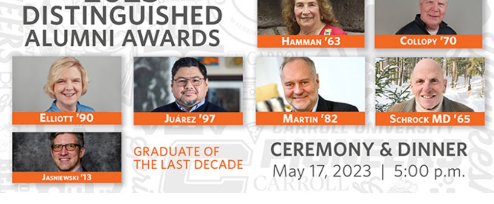 Carroll University is proud to have alumni who lead, serve and succeed in communities around the world. We follow the careers and accomplishments of our Pioneers long after they leave Carroll and celebrate their outstanding achievements. The Alumni Council presents these honored awards to the most prestigious graduates of Carroll University for their professional achievements, contributions to society and service to Carroll. Source: carrollu.edu