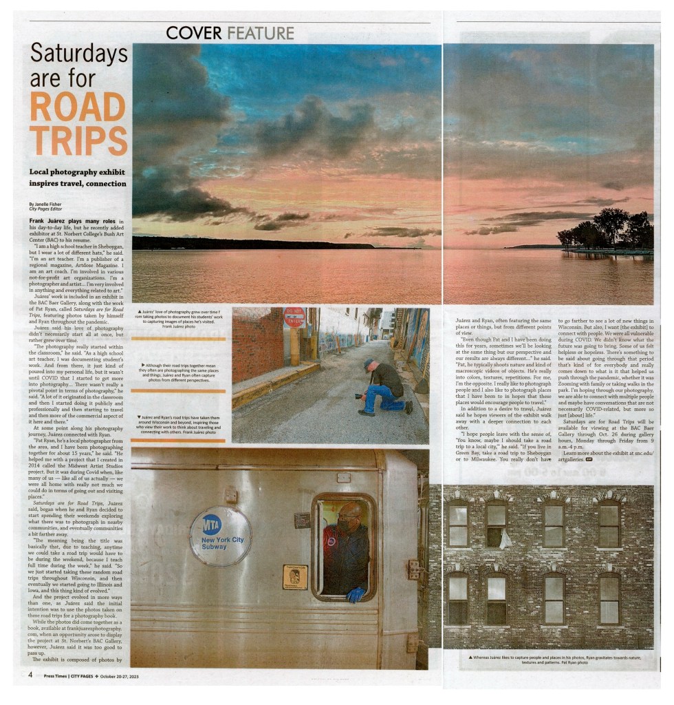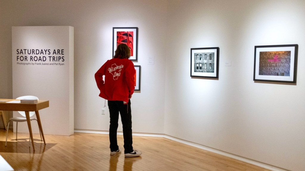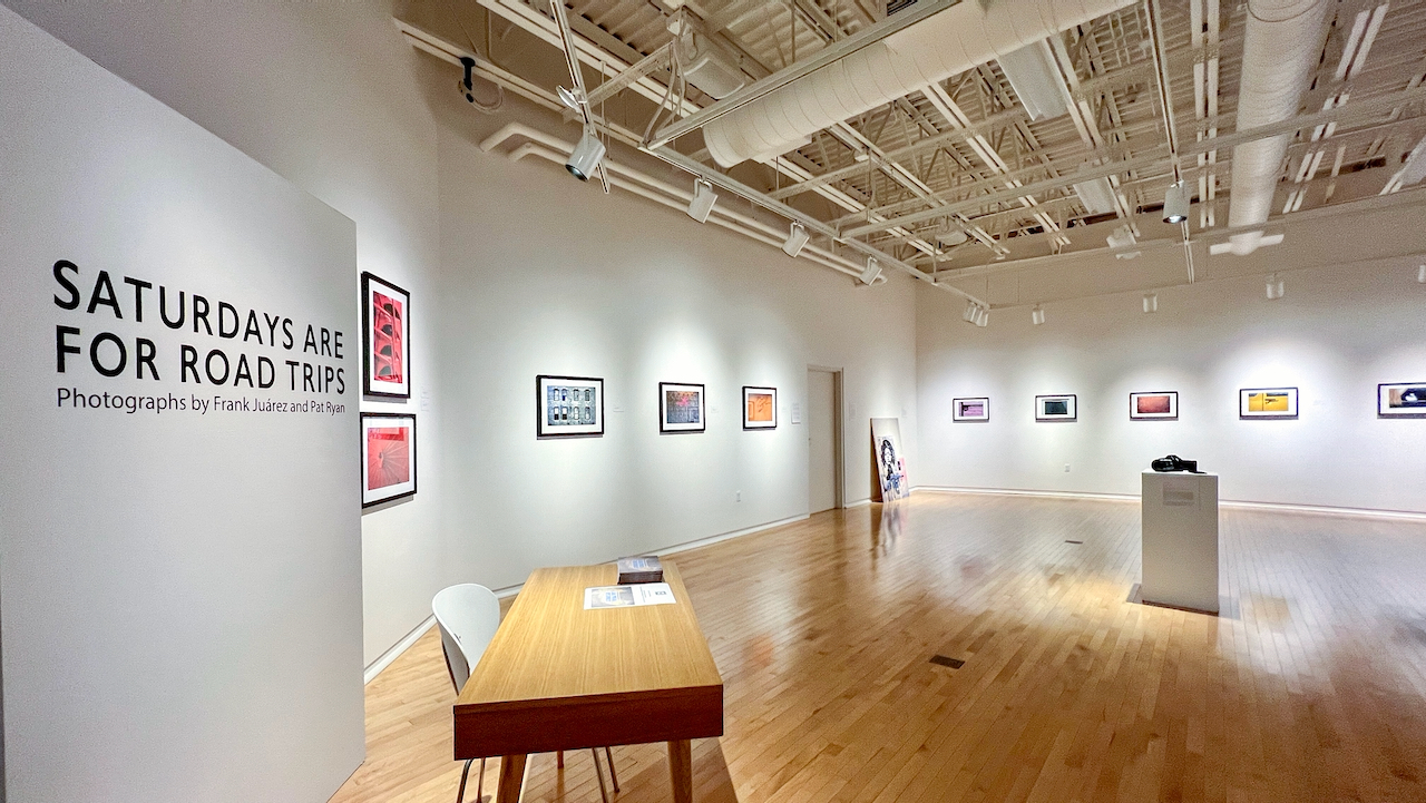 On October 19th, St. Norbert College’s Baer Gallery hosted the closing reception for “Saturdays Are For Road Trips” featuring new work by Frank Juárez and Pat Ryan. The cold and rainy evening brought a small yet engaging audience to the exhibition. Although there was not a formal artist talk, both photographers were approachable for conversations about the photographs, the journey, and what’s in store for the future.