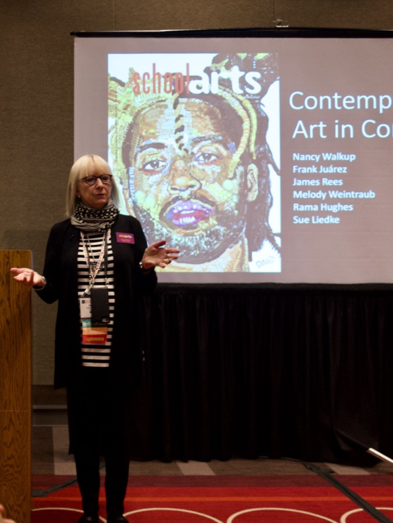 This year I presented several presentations. They were Yes We CAN!: Exploring Creativity as a Through Line of the Connected Arts Network PLC with fellow national teacher leaders Tim Needles, Gayle Nicholls-Ali, Chay Ross, and Cassie Dunlavey; How to maintain your studio practice as an art educator and why it matters with fellow artists/art educators Rama Hughes and James Rees; What Does an Equitable, Diverse, and Inclusive Classroom Look Like Today with colleague Dannielle Arneson and Contemporary Art in Context with SchoolArts Magazine editor-in-chief Nancy Walkup, SchoolArts Magazine authors James Rees, Melody Weintraub, Rama Hughes, and Sue Lidke.