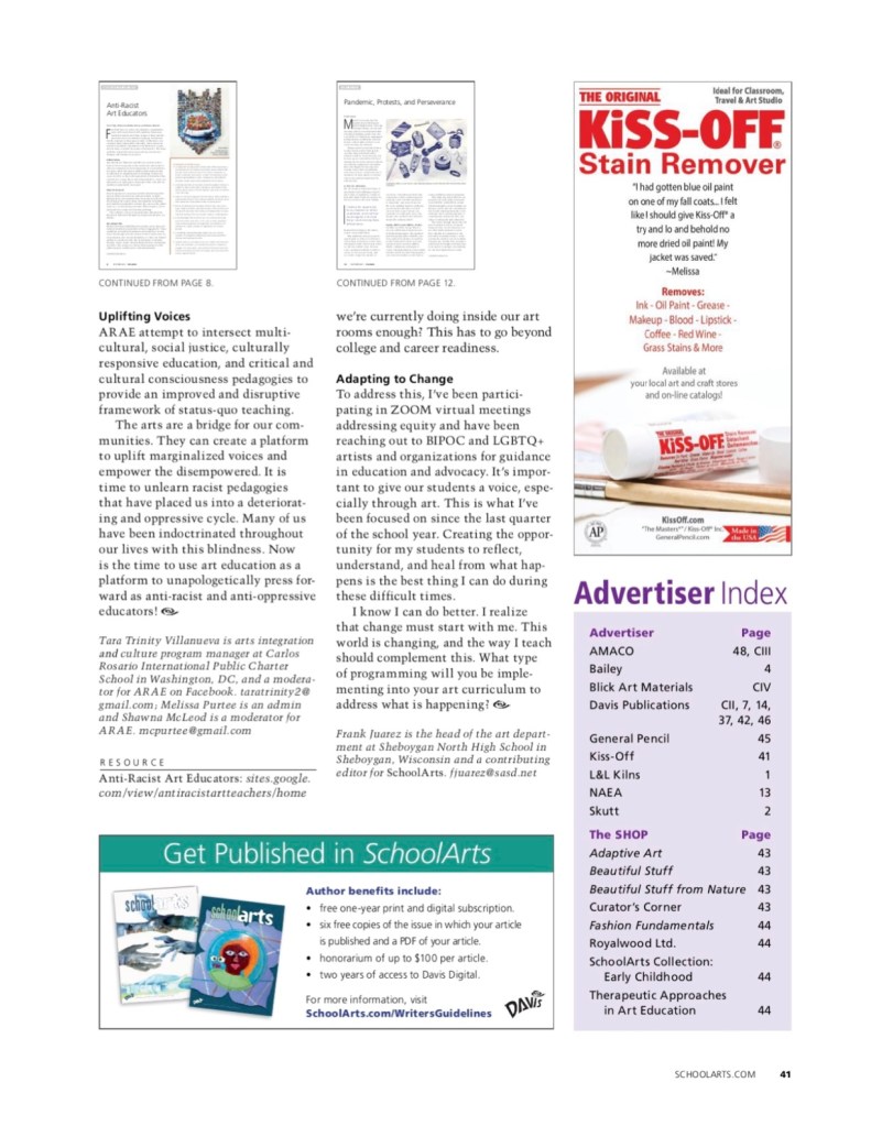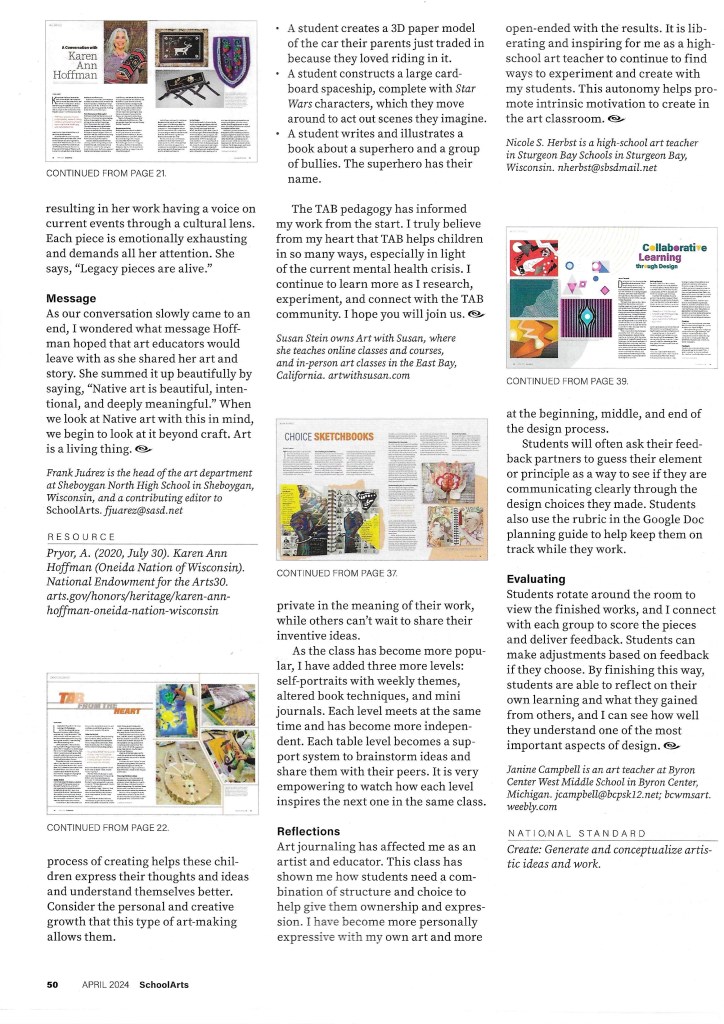 Here is a collection of selected articles published in SchoolArts magazine, Wisconsin People & Ideas, Wisconsin Visual Artists, and Kolaj Magazine as well as juror statements, Forewords, and editorials.